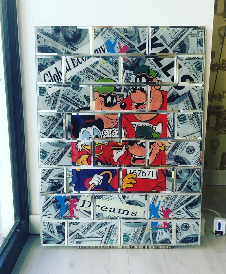 Specchio serigrafato con stampa digitale. Personalizzabile per stampa e dimensioni.